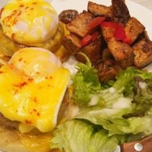 ハワイで何回か行ったことのあるレストランが横浜に出来たので行ってきました。パンケーキとエッグベネディクトをお友達とシェア。お味は…やっぱりハワイとは違いますね(^_^;)比べてはいけないのかもしれませんが、パンケーキは少し固めでした。。