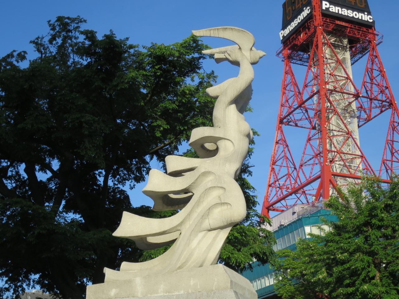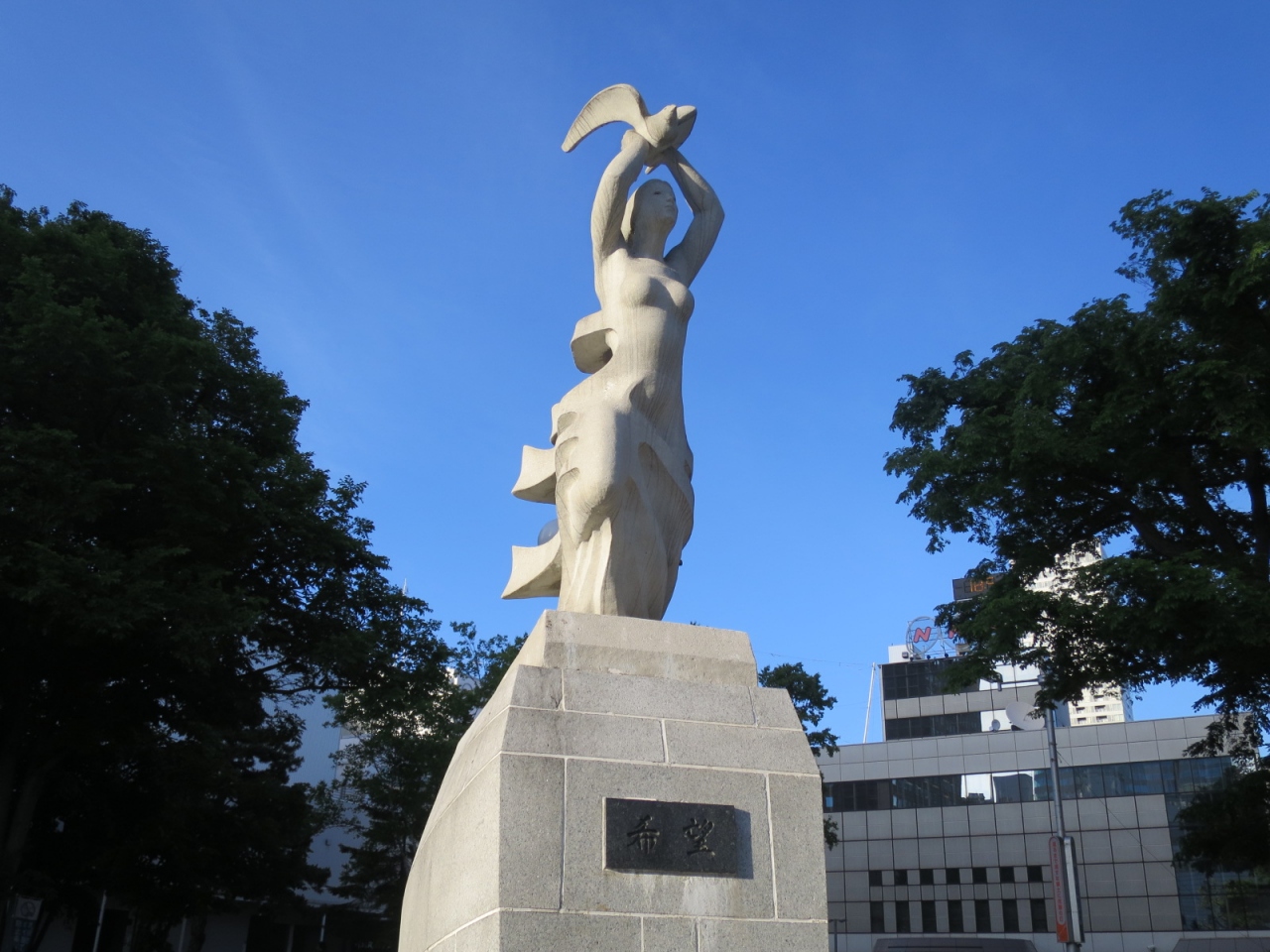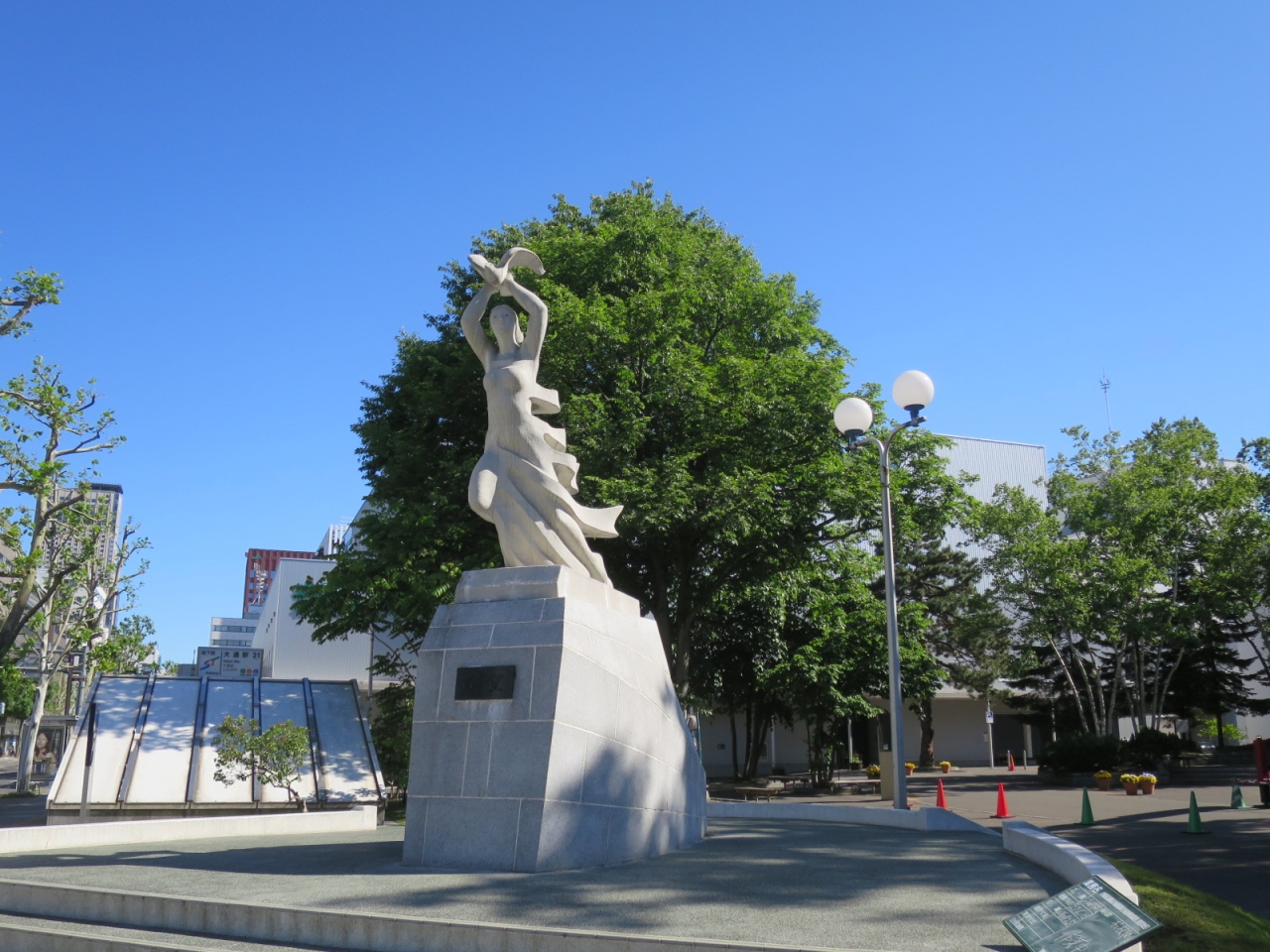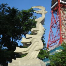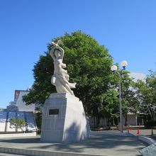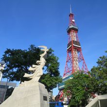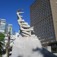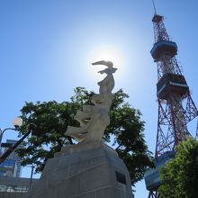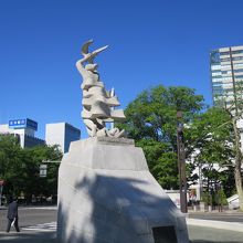 大通公園西1丁目の北側、NHKやわくわくホリデーホールの前の広場にある像です。