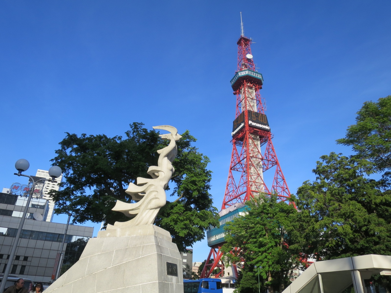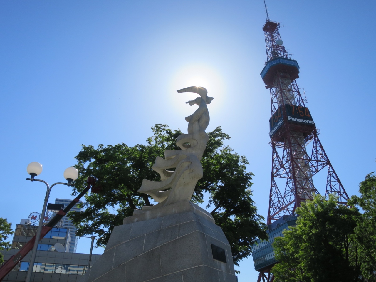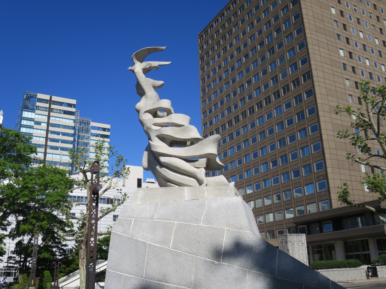大通公園西1丁目の北側、NHKやわくわくホリデーホールの前の広場にある像です。