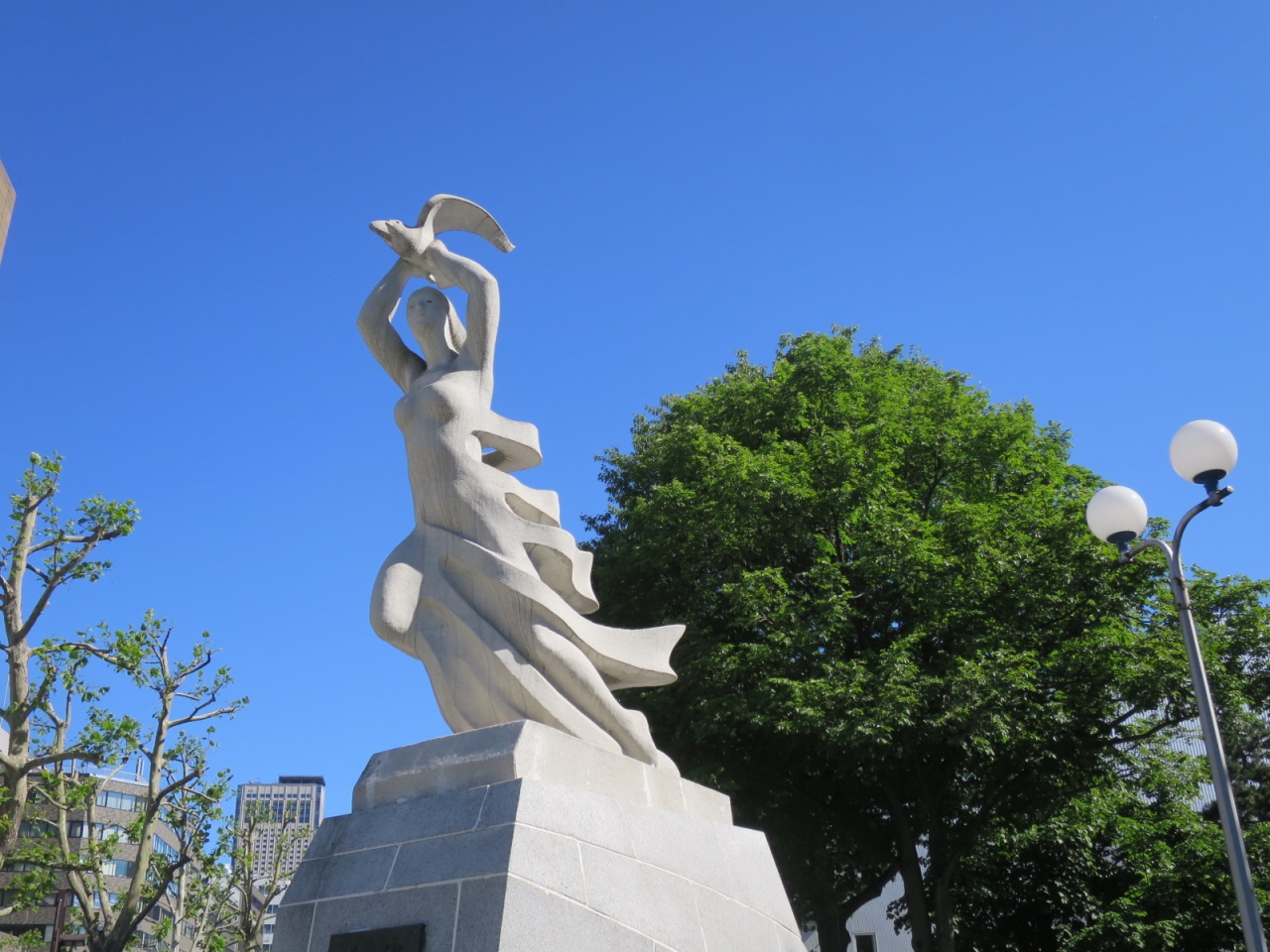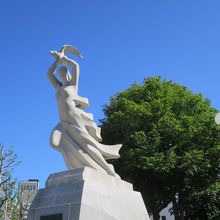 斬新なデザインで、白く輝く様子からは、設置から50年以上経過した像とは思えません。