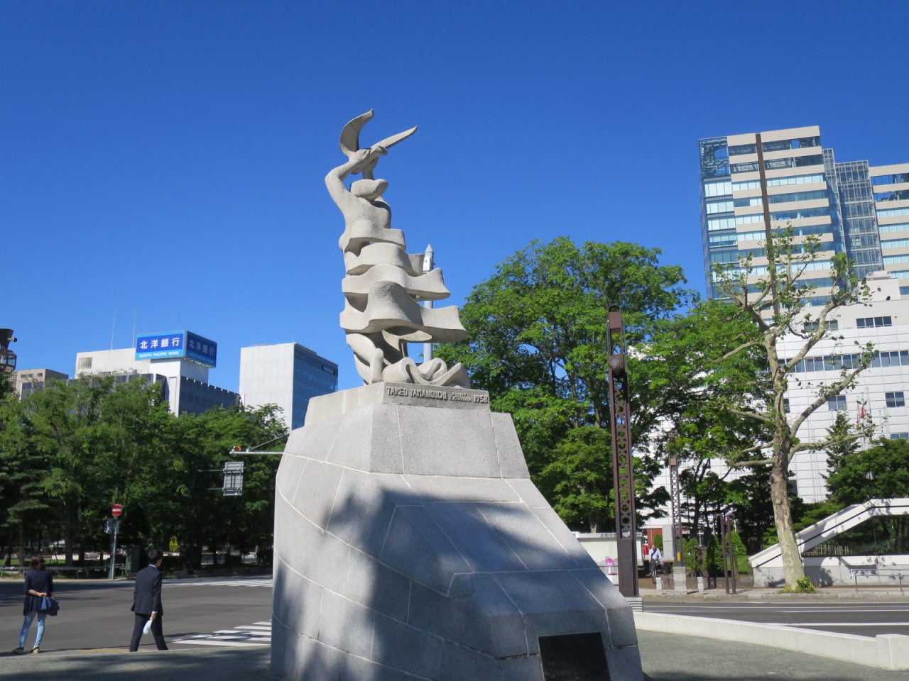 山内壮夫氏は岩見沢出身の北海道ゆかりの彫刻家で、ここから1kmほど南に離れた中島公園の入口にも“森の歌“という作品があります。
