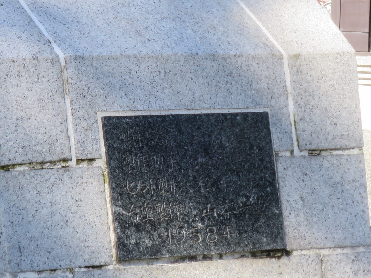 台座に山内壮夫氏の作品で1958年と刻まれています。