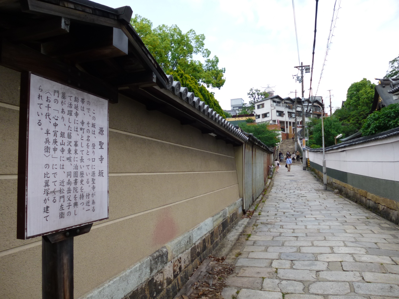 大阪市天王寺区にある風情ある長い坂です。「天王寺七坂」のうちのひとつに数えられています。両脇を寺の塀に囲まれ、「源聖寺坂」本体は石畳が連なっています。都心とは思えないような光景で、思わず何回もシャッターを切りました。
