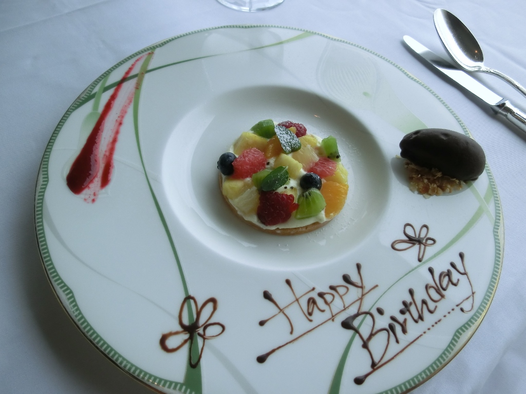 誕生日のランチで利用しましたが、サービスのケーキはありませんでした。デザートのお皿に「Happy Birthday」と書かれていました。写真も撮っていただきました。