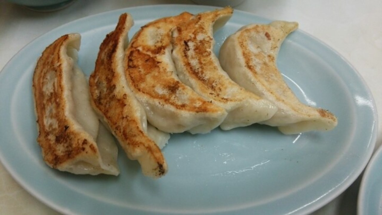 餃子の好みが別れますが、ここの餃子は大きめサイズ、皮がもっちりしていて、女性は特に一人で5個を食べると結構お腹いっぱいになります。でも、うまんだな~(笑)
