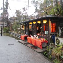 奥嵯峨の鳥居本から渡月橋に向かって歩いている途中で見つけたお店です。道路にはまゆで作られた小物が並んでいる無人の店があります。近くにある階段を40段ほど上った所に、さらに色々な小物を売っているメインの店があります。たまたま伺ったときはお客さんがいなかったこともあり、サービスで抹茶に五色豆をいただき、のんびり話をしてきました。帰り際にはお酒もいただき、朝からほろ酔い気分での嵯峨野散策になりました。まゆ玉を使った作品の継承者がいないことをとても残念がっていました。