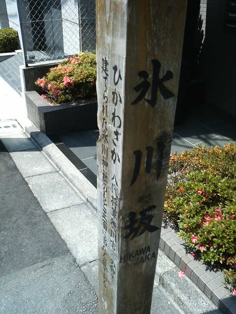 氷川神社は徳川吉宗によって建てられた神社で、その正面にある坂ということでこの名が付いたとのこと。