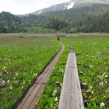 山ノ鼻に隣接する植物研究見本園、尾瀬ヶ原では見頃を過ぎた水芭蕉が見事に咲いていました。水芭蕉だけではなくリュウキンカ等の様々な植物も見られます。自然の中に一体化したような清々しさ、一周1,1キロのちょっとした散策コースになっていて、早朝は人もいないのでゆっくり写真を撮ることが出来て大満足です。