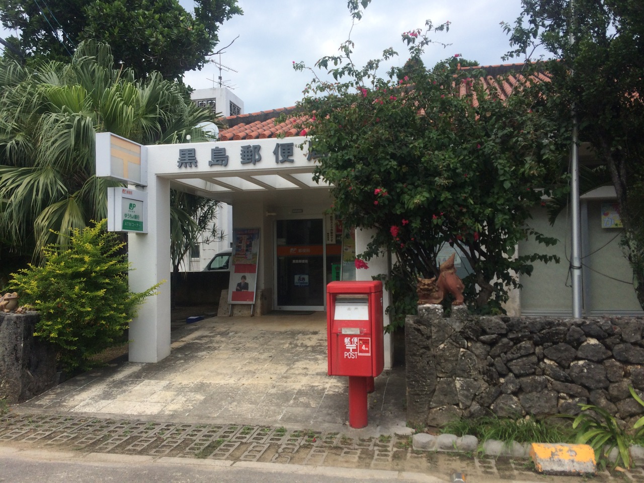 黒島の中心、東筋集落にある郵便局です。ATMもあるので旅の途中でお金を降ろすのに便利です。この郵便局の前の道は日本の道100選に選ばれています。郵便局の周りはサンゴの石垣で赤瓦の典型的な沖縄の民家が多く見られ大好きな場所のひとつです。