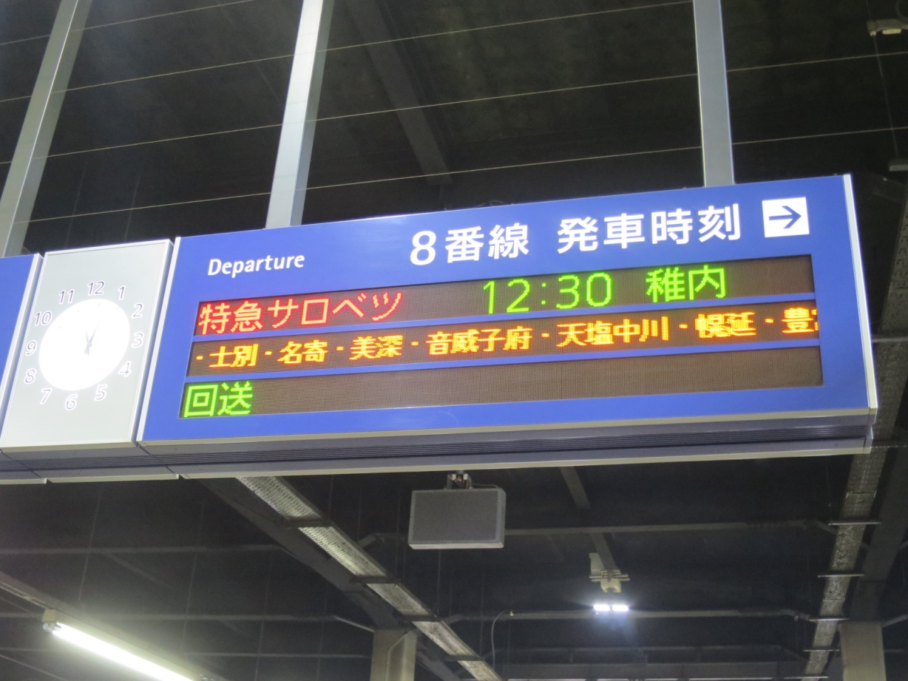 261系の振り子式のスーパー宗谷に対し、古い183系のサロベツは、稚内まで30分ほど余計にかかってしまいます。