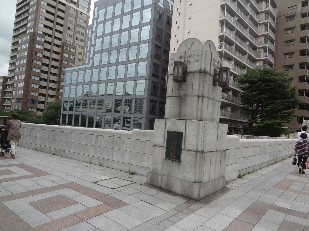 石造りのしっかりした橋です。場所は目黒通り沿い。目黒駅から下りてきてちょうど目黒川に架かる橋です。右側からも左側からも一本に延びる目黒川を見渡すことが出来、特に桜のシーズンには両サイドにびっしりと咲き誇る桜が何とも素晴らしい眺めです。