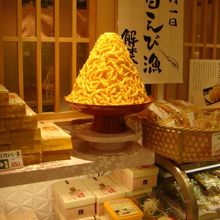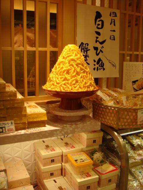 富山駅構内きときと市場とやマルシェ内にある白えび料理の専門店です。お昼時に行ったら10名ほどの行列、時間がないので「白えびせんべい」を買って帰ることにしました。白えび一尾そのままの姿で生地にのせて焼き上げたせんべいで、見た目は化石のよう感じがしますが、潮の香りとえびの味が混じり合って香ばしいです。店の店頭にあったえびの模型にはびっくりしました。