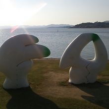 この岸公園、宍道湖の南岸に位置していて、案内板によると県立美術館の他、宍道湖うさぎ・風門等数々の彫刻と宍道湖・嫁ヶ島の自然景観が調和する親水空間となっているそうです。