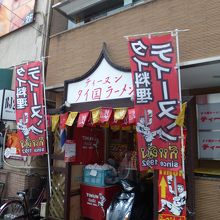 赤坂に勤める友人に教えてもらったお店です。どうやらチェーン展開しているようですが、私は初めて知るお店でした。タイ料理のラーメン店で、ムエタイをあしらった幟が印象に残りました。小さなお店なので、昼時は混み合います。