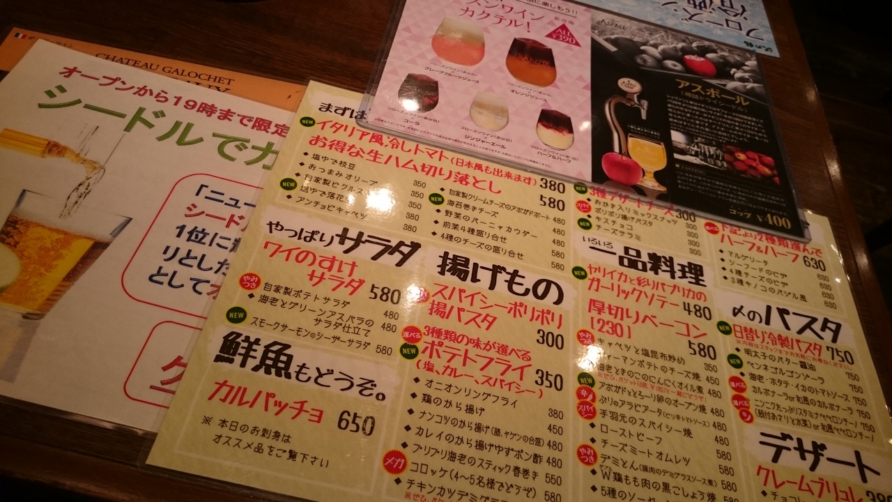 お摘みや、ドリンクの種類や、価格にも、驚かされました。