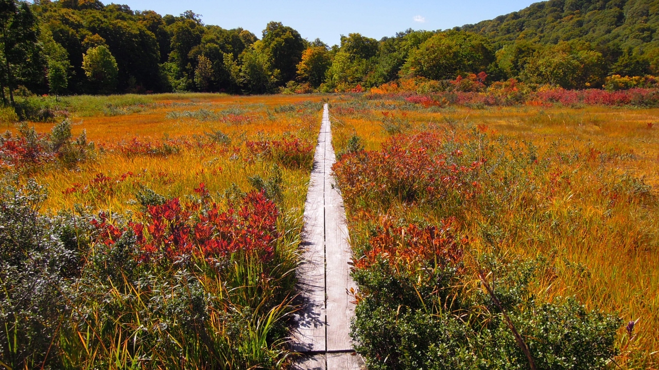 途中にキャンプ場方面へつながる湿原の道があります。短いですが、紅葉がとてもきれいです。