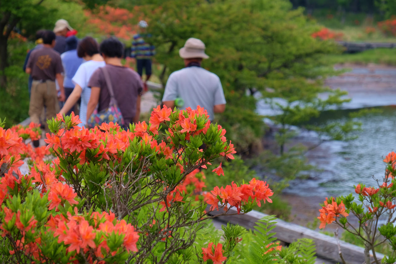 春の覚満淵 初夏の覚満淵 つつじの咲く湖畔を歩く