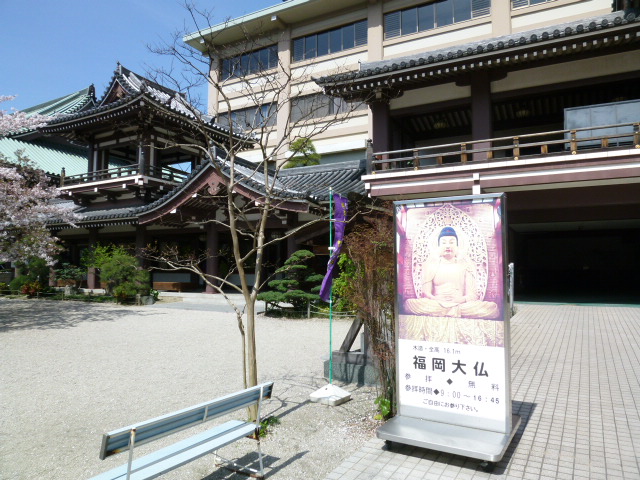 地下鉄・祇園駅から徒歩ですぐです。近隣には博多町家ふるさと館と合わせて訪ねてみてはいかがでしょうか。博多へは数回来ているのですが、福岡大仏のことは知りませんでした。真言宗の寺院で福岡藩主・黒田家の菩提寺で広い境内には本堂や六角堂、五重塔や黒田家の五輪塔がいくつもありました。みどころのひとつは木造釈迦座像で、想像以上に大きく煌びやかで表情もお優しそうでした。通称福岡大仏様と呼ばれているようです。ぜひ参拝しましょう。