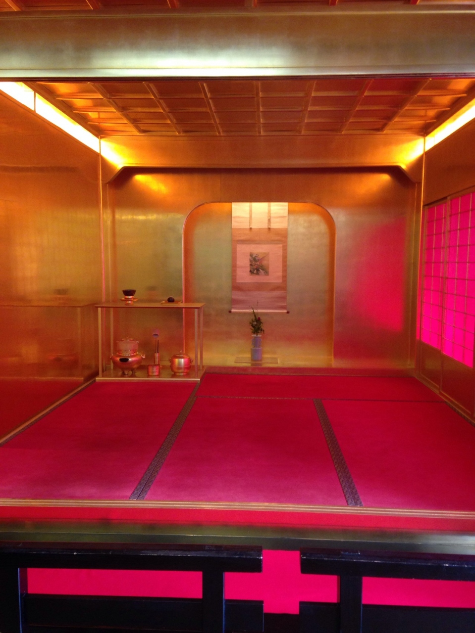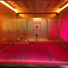 箔座本店に黄金の茶室がありました。金沢に一泊した翌日にお邪魔しました。茶室の説明をして頂けて、金箔入りのお茶を頂き、職人さんの作業もみることができました。なかなか面白かったです。お土産にこんぺいとうに金箔の入った金ぺいとうを購入しました。