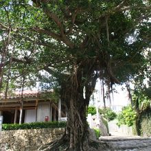 途中、ガジュマルの木の近くに赤瓦屋根の休憩所もあります。