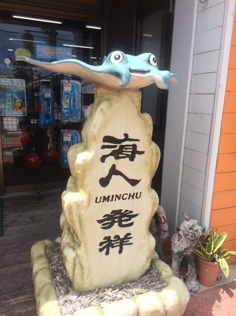 石垣島離島ターミナルをでて駐車場の目の前にドーンと構えているのが昔から有名な海人工房です。海人Tシャツがお土産の定番だった時代もありました。Tシャツ、ステッカーなど海人もの以外にもセンスの良いお土産も売っています。