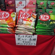 海外からの観光客に人気の抹茶味やアップルパイ風味のキットカットも置いてありました。