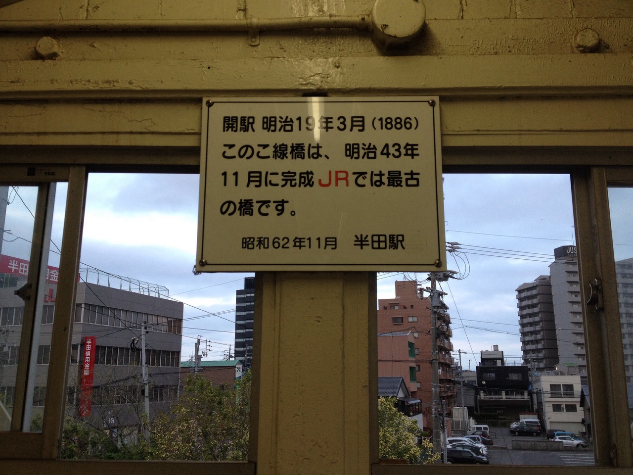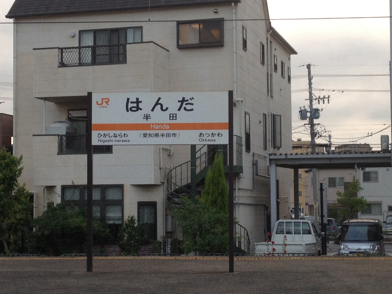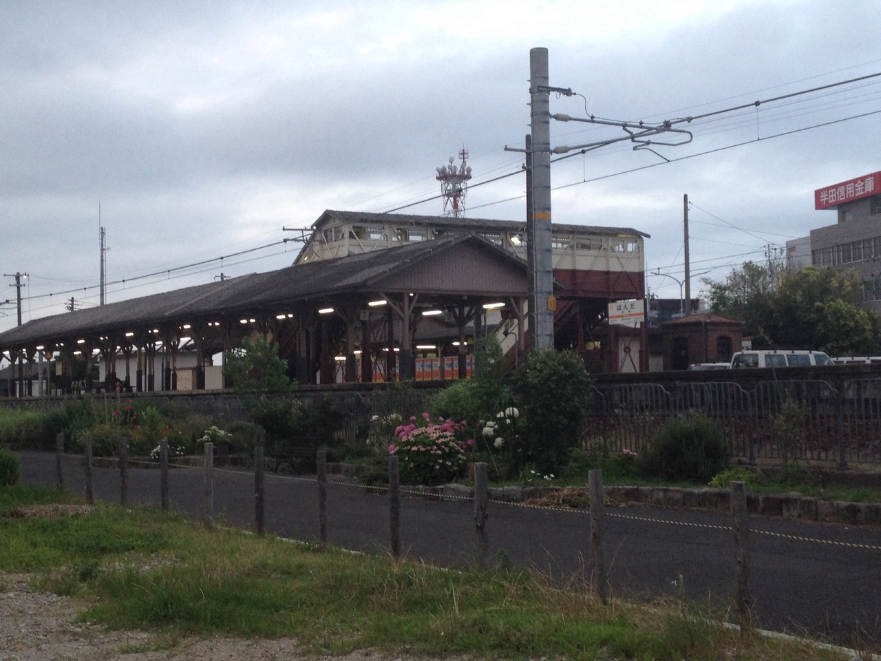 名古屋駅よりおおよそ40分でJR武豊線半田駅に着きます。明治時代の国鉄東海道線の開通前に既に武豊線が開通していたので必然的に古い建物などが多く残ってます。半田駅は乗客がホームから駅舎改札口に行くための陸橋が日本一古いとプレート表記されています。駅周辺はミツカンタウンで経営者の方のお屋敷や蔵などがあります。個人的に駅前の成田屋という食堂が好きです。