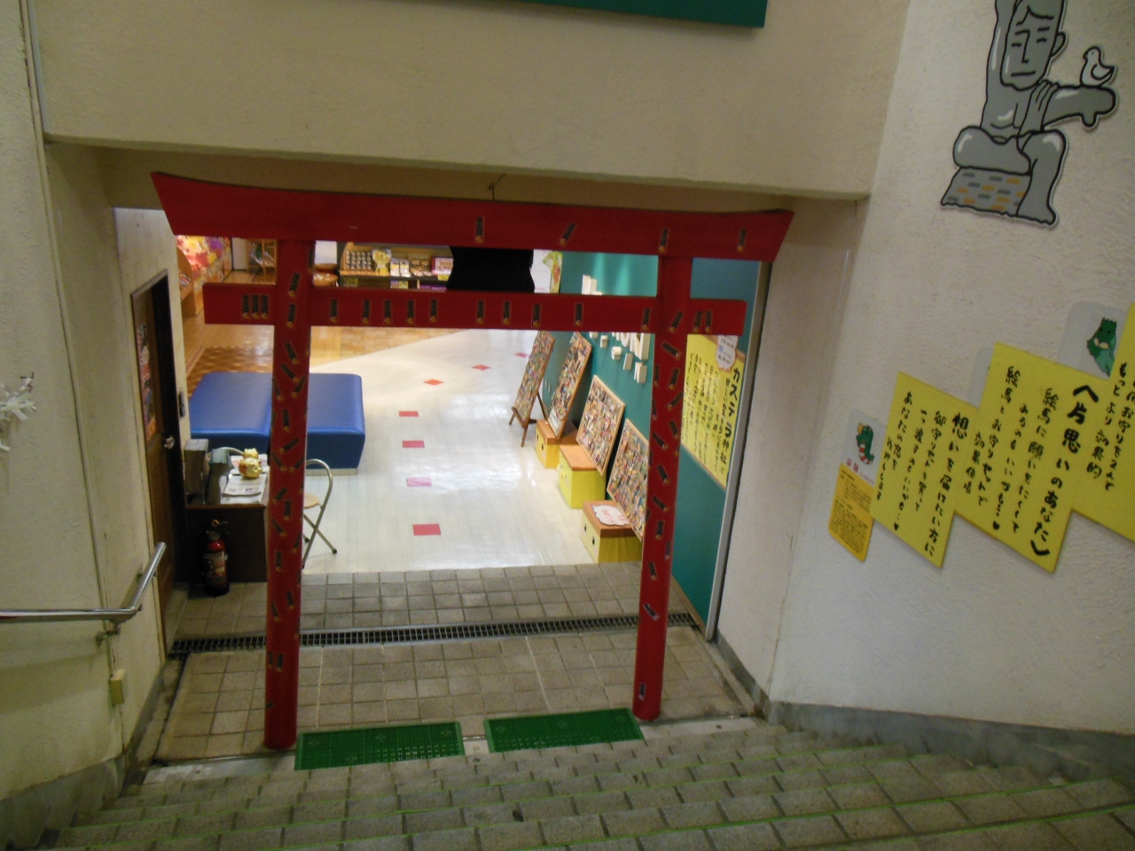 派手な鳥居をくぐって階段を下りると、カステラ大明神がいらっしゃいます。