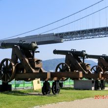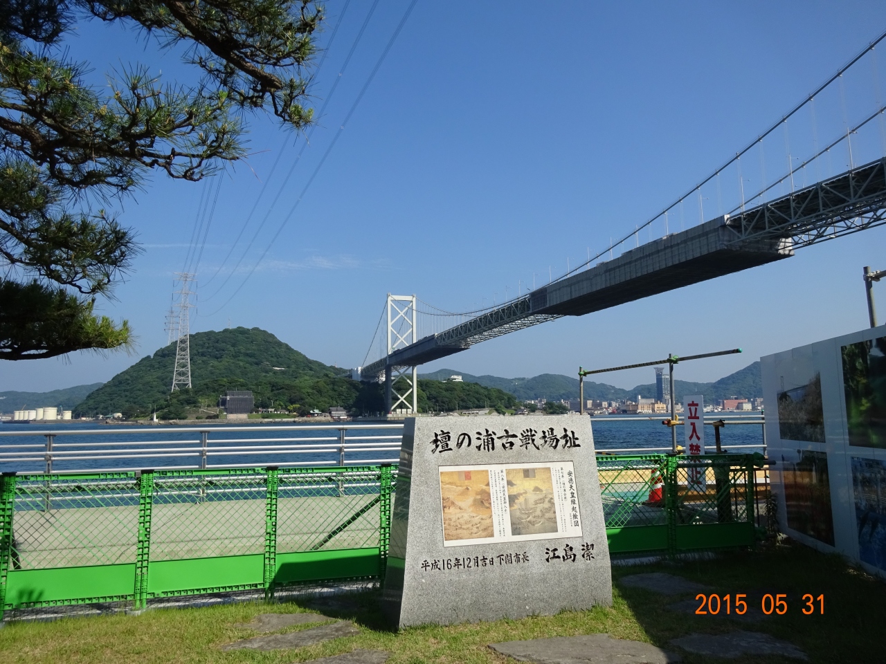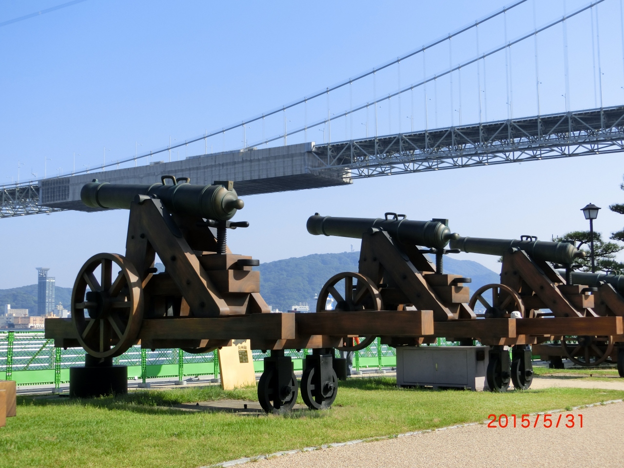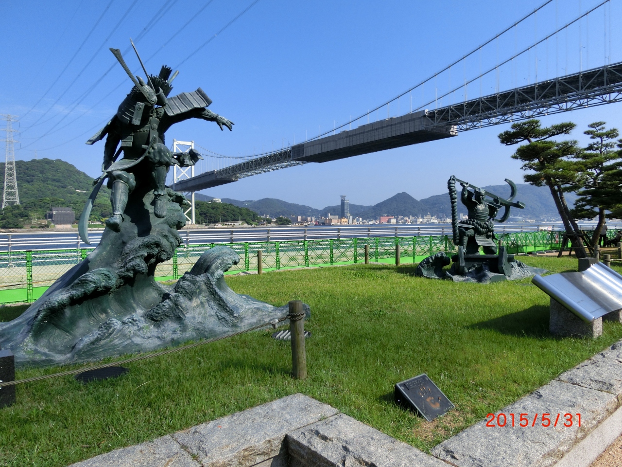 下関の唐戸桟橋から徒歩で亀山八幡宮・日清講和記念館・赤間神宮などに寄り、みもすそ川公園に着きました。関門海峡に面した公園は遠くに望む関門橋や門司地区の景色もとても良く、休憩するのに良い場所でした。壇ノ浦古戦場跡や長州藩の大砲のレプリカや源義経・平知盛の像など見所が多くあります。
