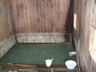 湯畑から東に坂を下ると最初にある無料の共同浴場です。湯船は1つあるだけです。源泉は湯畑でPh2.1の強い酸性です。