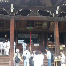 立派な本堂の前には、宝勝牛が玉を咥えており、その牛玉に触れると勝ち運に恵まれるそうで、元横綱の若乃花・貴乃花の手形がありました。