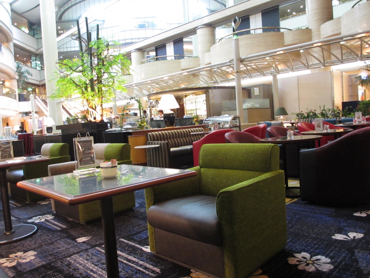 ホテルニューオオタニ大阪の1階のロビーラウンジは、吹き抜けの天井から差し込む明るい陽射しが柔らかく、いつまでも座っていたいようなゆったりとした気分になります。コーヒーは何回でもお替りできます。ゆったりとしたソファで優雅なひと時を過ごせます。