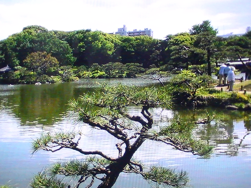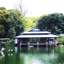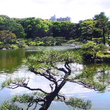 磯渡りも見所です、池の端に石を飛び飛びに置いて、そこを歩けるようにしたもので、広々とした池の眺めが楽しめるだけでなく、歩を進める度に景観が変化するように工夫されて楽しめます。