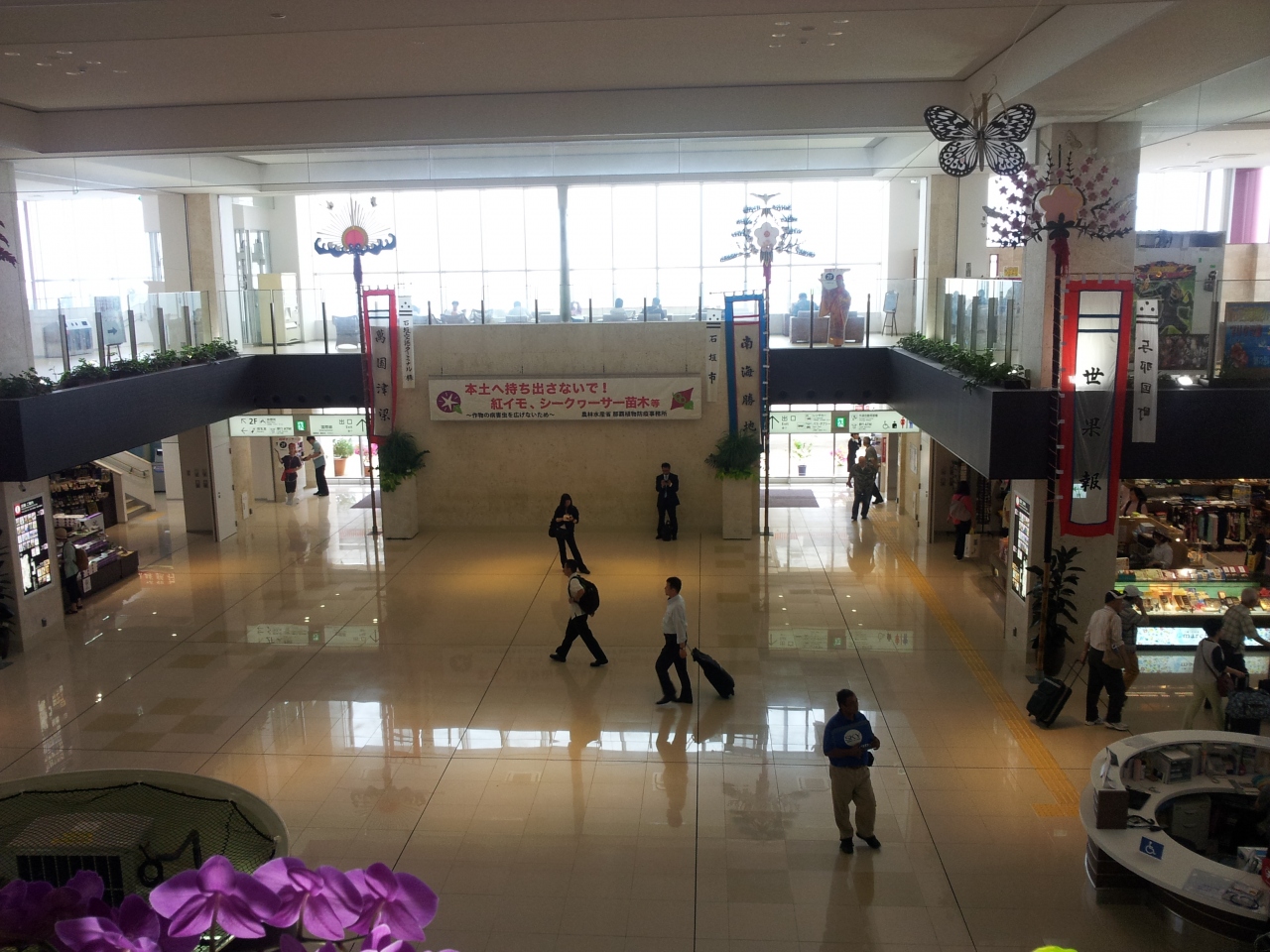 離島の空港ですが、利用者数は半端じゃありません。これから夏場にかけ、一段と観光客数が増加し、賑わうことと思います。コンパクトな作りの空港ですが、必要なものは大体揃います。買い忘れたお土産も、市内まで遠く戻ると大変ですが、此処で買い揃えることができました。スタバもありました!