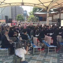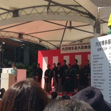 リバレイン前では、オークラとの間にステージが出来て、歌舞伎役者の挨拶が行われます。