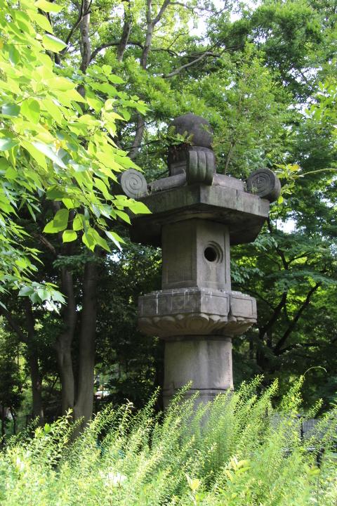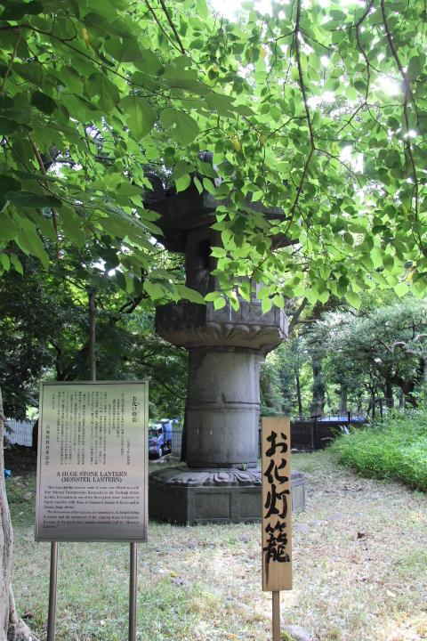 上野公園内の上野大仏から上野東照宮に向かう途中にありました。上野東照宮の参道にも大きな灯籠が並んでいますが、おばけ灯籠はそれらよりはるかに大きく存在感があります。何故か他の灯籠とは離れてポツンと立っています。
