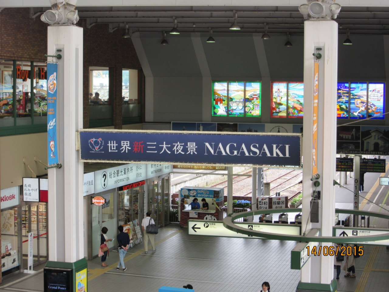 JR長崎駅の改札を出てすぐ、コーヒーショップと一緒にあります。2名のスタッフで対応。空港からの高速バス終点長崎駅で下車し、案内所で【長崎さるくコースマップ】と