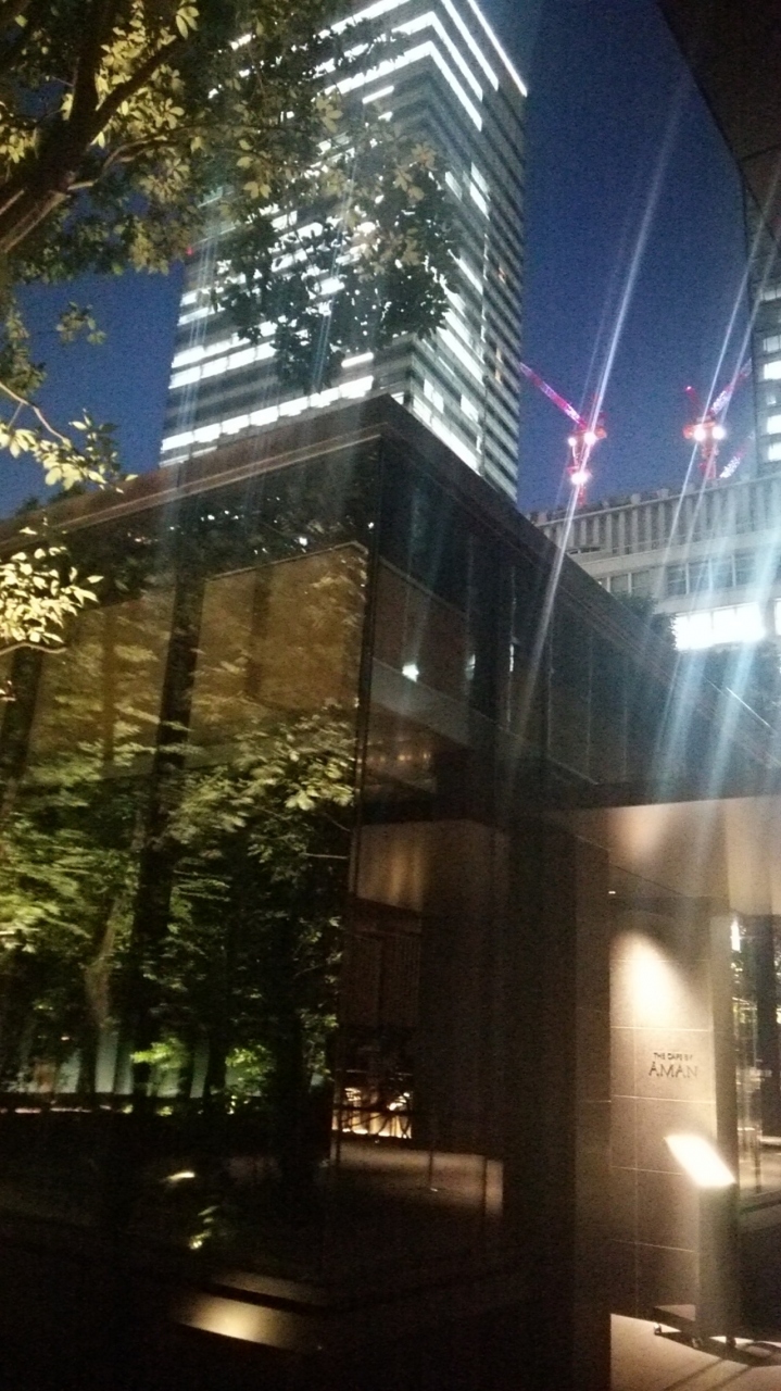ガラス張りで外の森林が、ライトアップされ、素敵です。