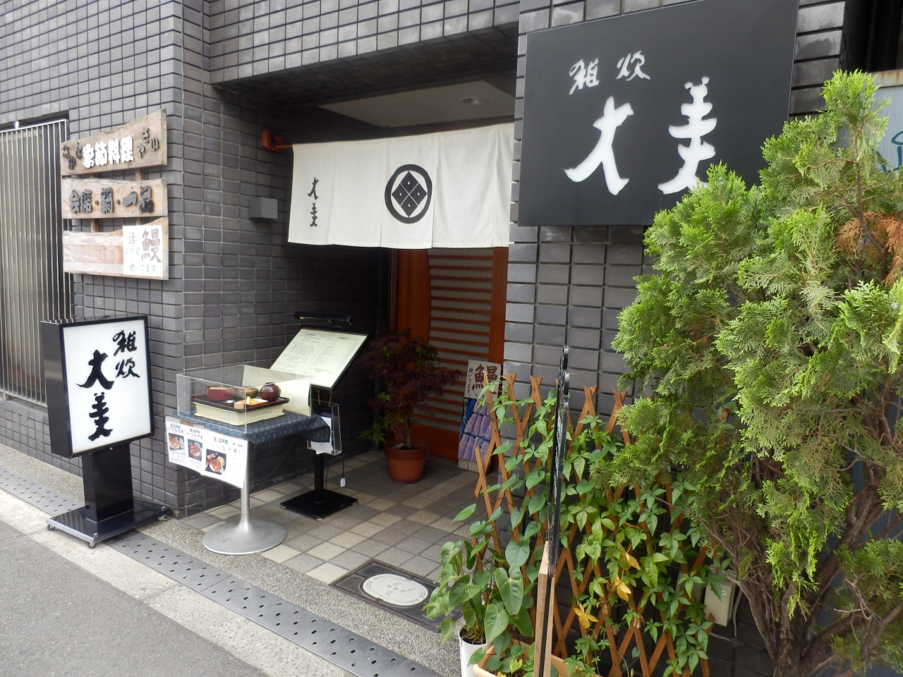 大美(だいみ)は大阪の西天満、読売新聞大阪本社の南側、小生在職中この付近が職場であった、近くの太融寺へいったので久しぶりに昼食をここでとることにした、退職後10年になるが店構えはそのままでした、同伴者がいるので雑炊セット松を注文、2700円です、焼魚、焚合、そしてメインの雑炊、懐かしい味が湯気と共に吹き上げてきたのには感激。