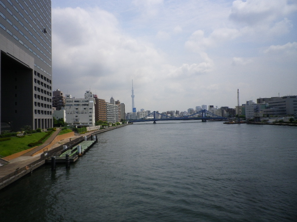 隅田川も場所によって随分と雰囲気が変わるものです。隅田川大橋から遠くのスカイツリーを眺めてみました。反対を向くと永代橋が見えます。隅田川に沿った遊歩道を使っての、橋巡りの旅もおもしろいかもしれません。