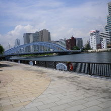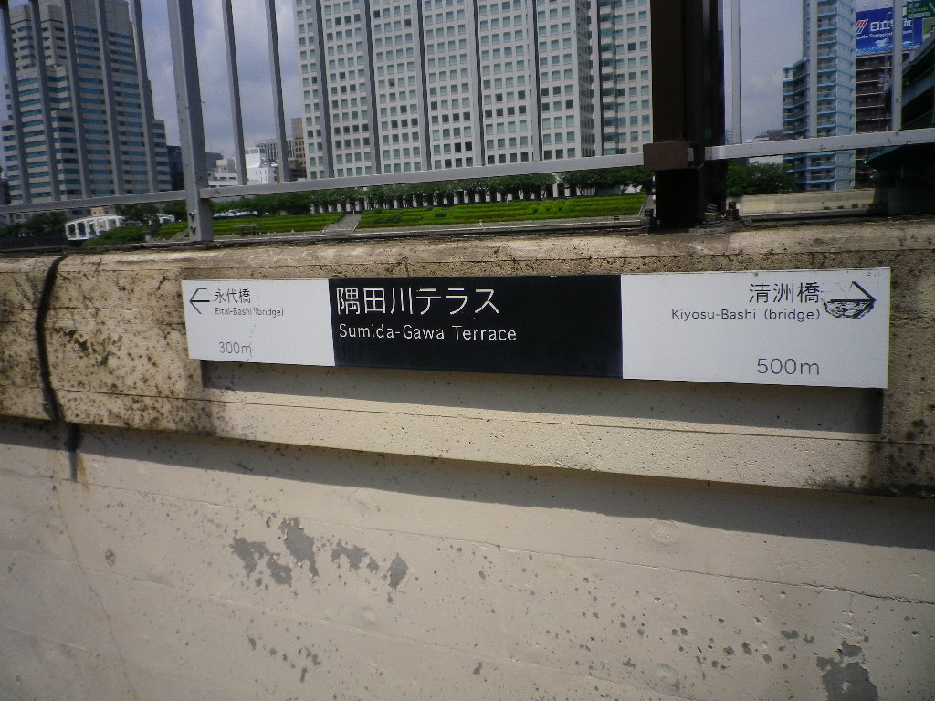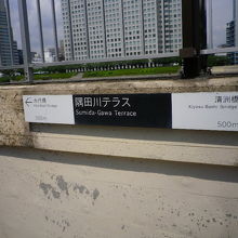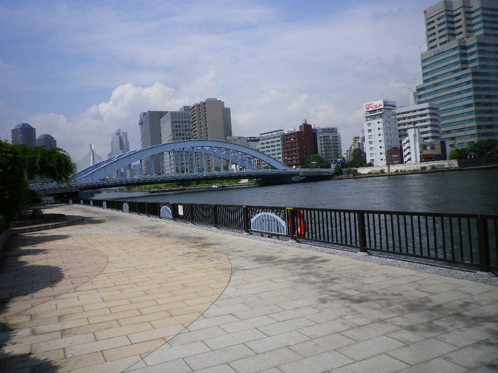 隅田川沿いに設けられた遊歩道。ジョギングやサイクリングによさそうな場所でした。天気の良い日に歩くと気持ちがよさそうです。もう少し花でも植えられていれば良いように思います。少し潮の香りが漂っていました。