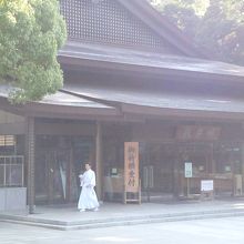 なんとさすが明治神宮、景観を重視し地上一階地下二階の入母屋流れ造りの純和風で本殿との一体感を考慮したそうです。