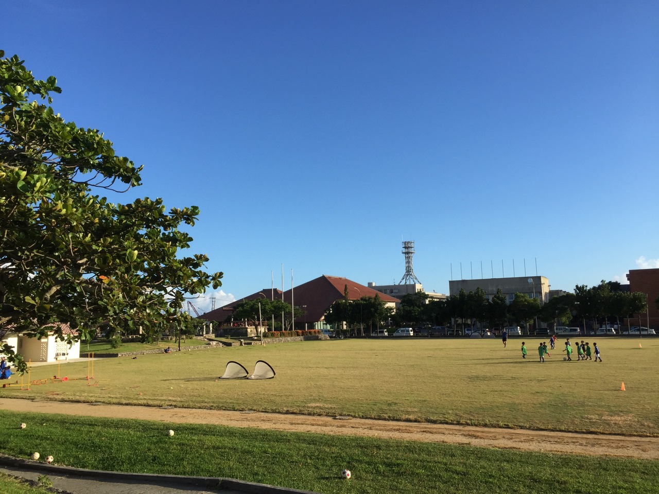 石垣市街の中心にある公園で、広々としたグラウンドや子供達も楽しめる遊具も揃っています。