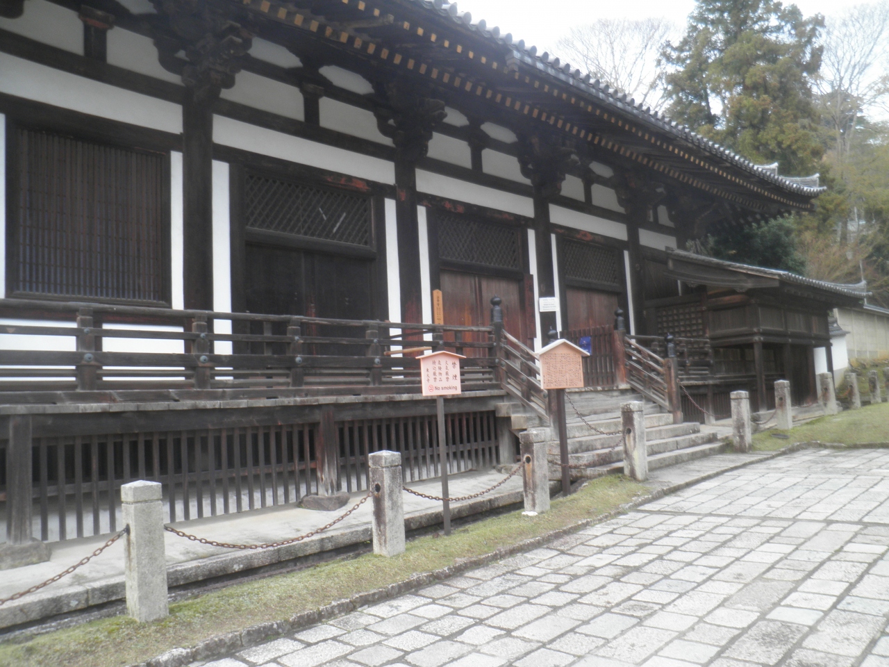 二月堂から夕陽でもみようかと、あんまり人がいない東大寺の大仏殿から坂を上っていくと、名物の鹿さんたちが夕方のミーティング中でちょっと不気味でした。 山側の奥のほうの平らなところにでると、東大寺法華堂の三月堂にたどり着きました。 東大寺最古の建物なのだそうで、夕陽が白壁にあたってきれいでした。 ここでも、鹿さんの落し物の匂いがしました。