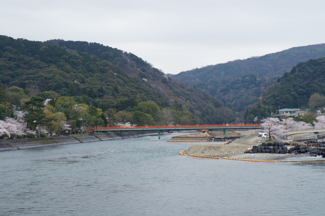 宇治川には宇治橋や巽橋からの朝霧橋がかかっていて奥には天ヶ瀬ダム・