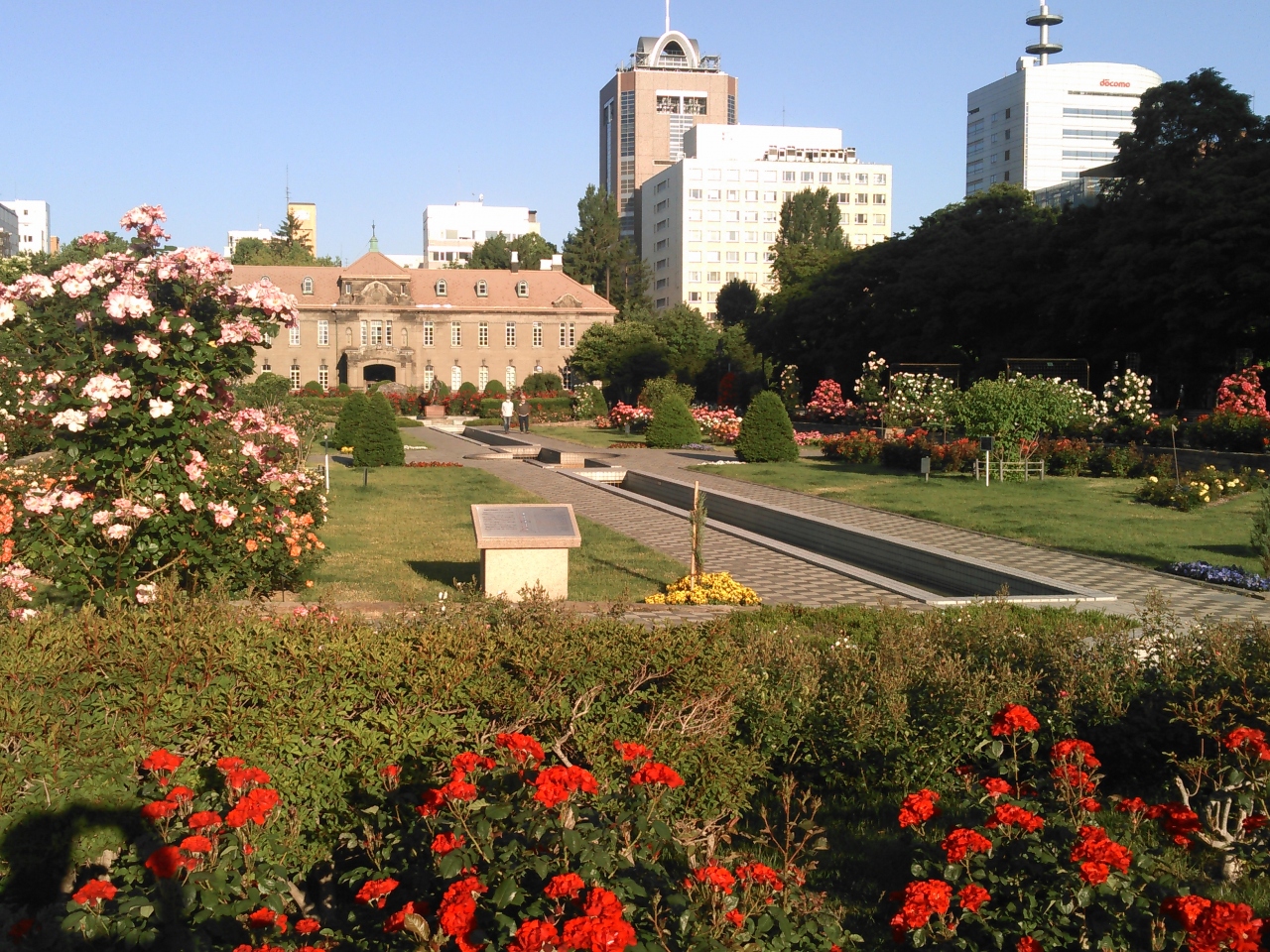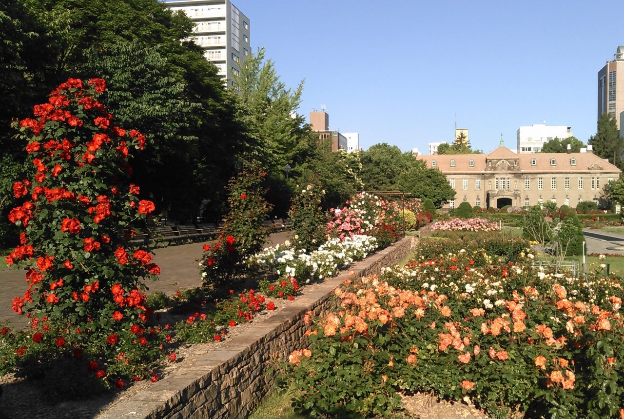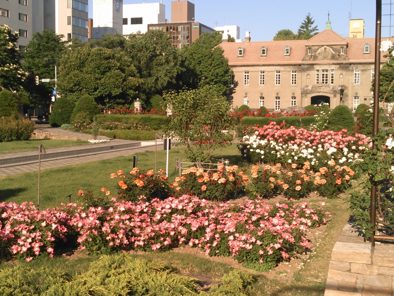 資料館に一直線に向かう水路そして周囲が様々な種類のバラで彩られている様子は、5月に訪問した時より益々ヨーロッパのどこかの国のお城のようで、スマホカメラにはとても収まりきれないほど美しい風景だった。なお大通り公園西12丁目の南側(サンクガーデン真向かいということ)にコイン駐車場があったのでとても便利であり、早朝だったので駐車料金100円で小一時間たっぷりと楽しめた。