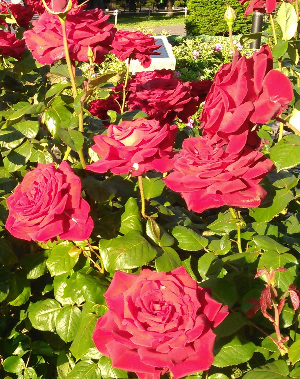 実家に泊まった翌早朝に行ったため水路に水は流れていなかった(通水は10時から)が、札幌市と姉妹提携した都市(ミュンヘン、ポートランド、瀋陽)のバラが美しく咲き誇っていた。今回も一眼レフを持って行かなかったので、スマホのカメラで撮影した。