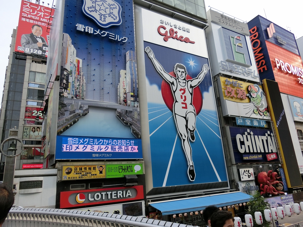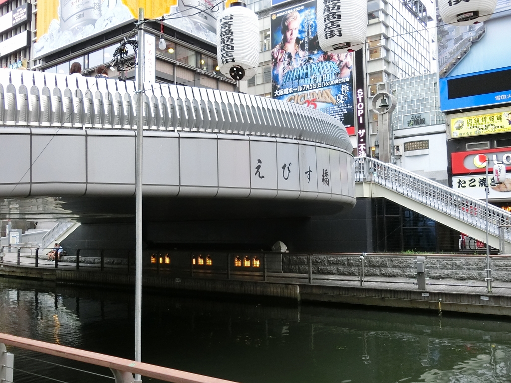 もう説明する必要がないほど有名なスポットの戎橋 通称ひっかけ橋 行ったのが平日の昼過ぎだったのでナンパ目的の若者はあまりおらず 1番多かったのがアジア系の観光客 橋の上からグリコの看板をバックに写真撮影している人が多数