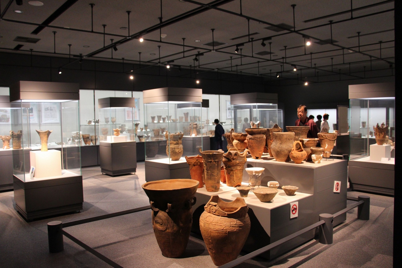 縄文土器や石器などの実物資料に加え、映像や写真、日本各地で出土した資料をもとに、縄文時代の人々の生活や習俗のほか、縄文時代の人々を取り巻く環境などについても考えられるように展示しています。展示室内には簡単な体験ができるコーナーを設置して、縄文時代の技術も学習できます。