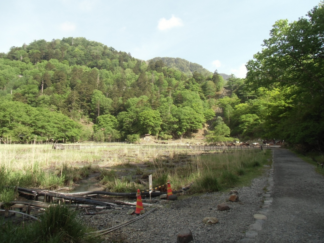 湯畑のような湿地帯に木道が整備されていて、近くにある温泉寺に繋がっています。